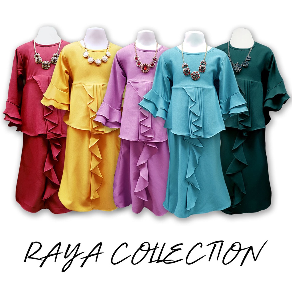 Baju Kurung Peplum Ruffles 1y 12y 5 Colors Part 1 Maroon Light Purple Turquoise Yellow Mustard Emerald Green Crepe Shopee Malaysia shopee.com.my